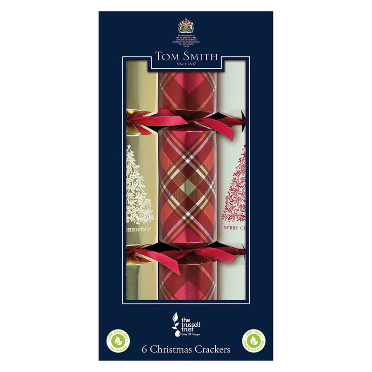 Tom Smith is considered the father of Christmas crackers. As a confectioner during the Victorian period, he added a snap, hat, gifts and messages to paper containers and was soon awarded a royal warrant for providing festive novelties and wrapping paper to Buckingham Palace. Each pack contains six quality red and gold 12" long crackers or, as Tom Smith originally called them, "Bangs of Expectation." Over time, a simpler name became more popular, which is why we have a cracker on the dinner table, rather than a 'bang.'