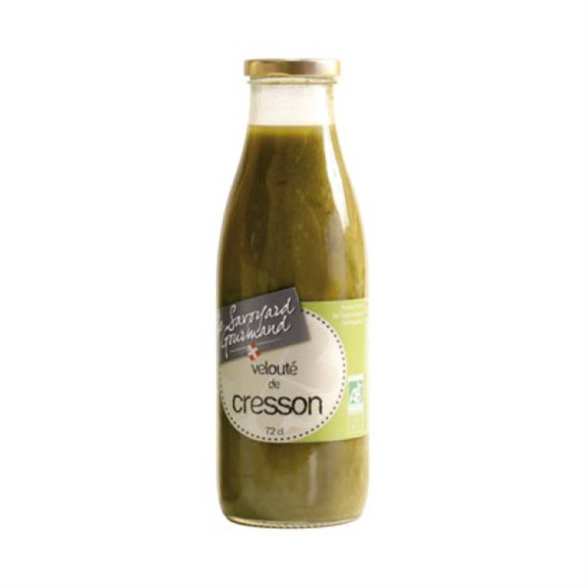 Water, organic cress from France (20%), organic potato, organic onion, organic corn starch, organic butter (MILK), salt.