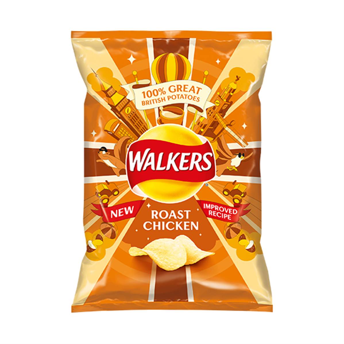 • Walkers clearly understand the joy of crispy roast chicken skin. Whilst being completely suitable for vegetarians, these roast chicken-flavoured crisps are seasoned to recreate the slightly-salty, subtly-umami flavour of a perfect poultry roast dinner. Also available in individual packets.